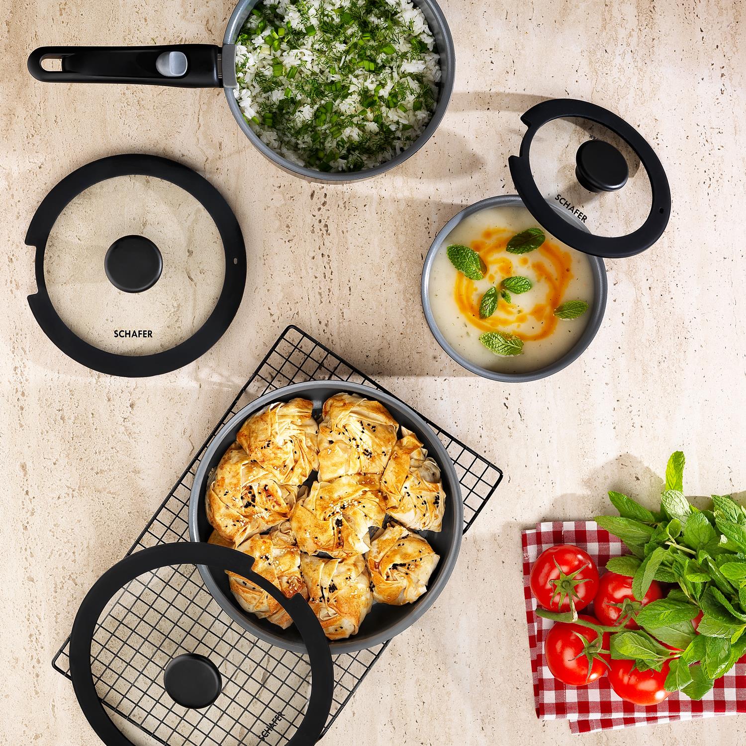 – I përshtatshëm për të gjitha llojet e sobave, përfshirë edhe ato me induksion.
